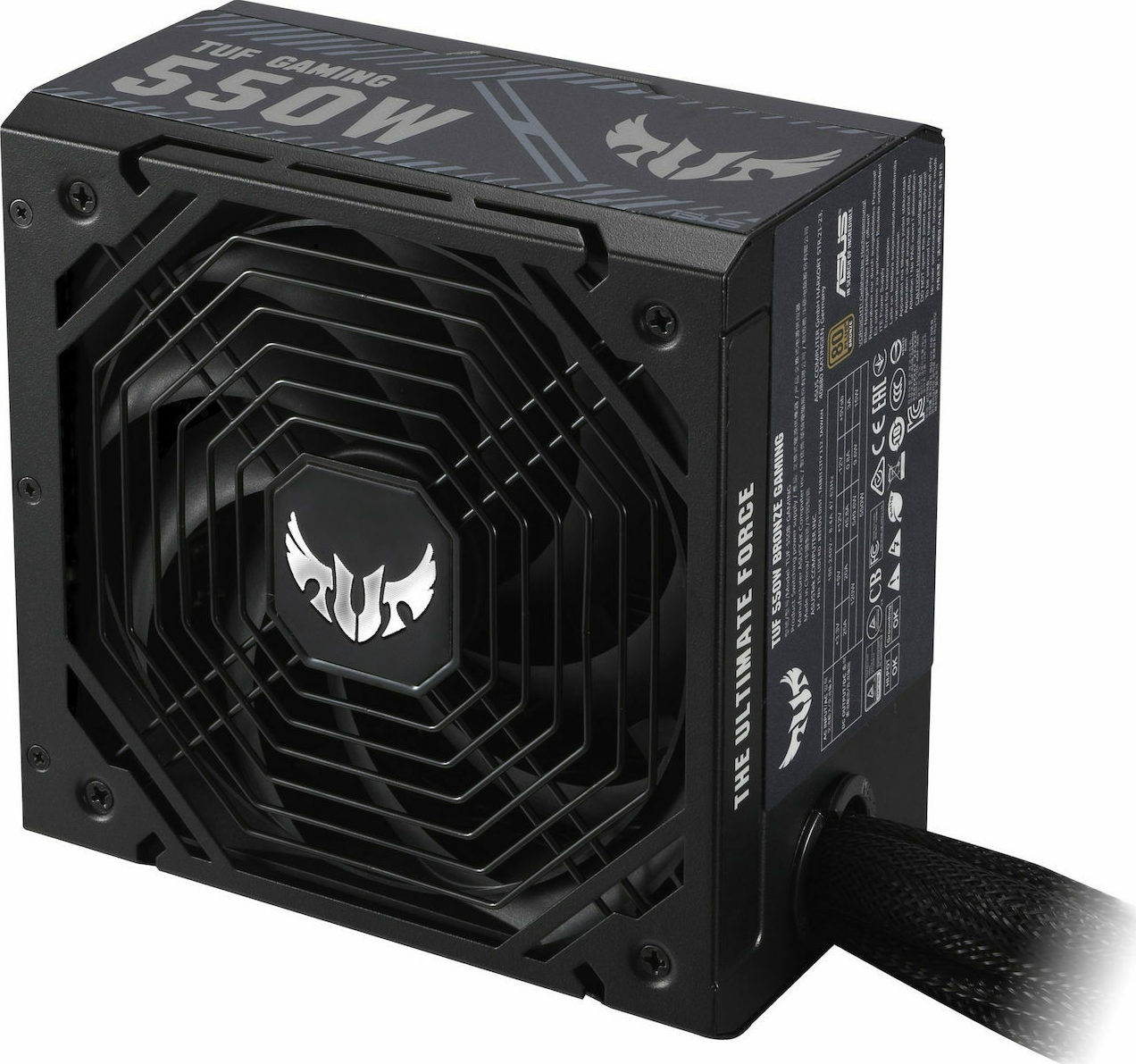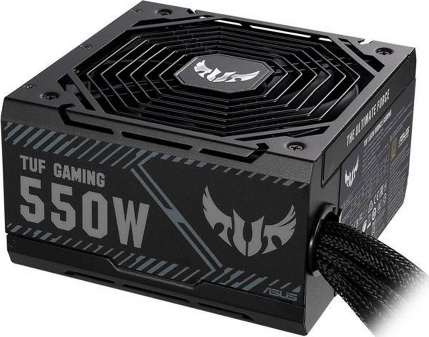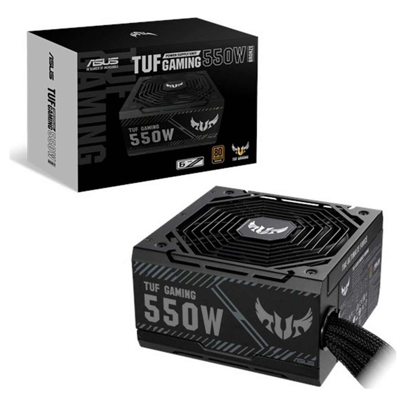 Τροφοδοτικό υπολογιστή της Asus με ισχύ 550W. Είναι πιστοποιημένο με 80 Plus Bronze, κάτι που αφορά την απόδοση του σε σχέση με την ονομαστική του ισχύ σε Watt, όχι τόσο σημαντικό για το μέσο χρήστη. Το συγκεκριμένο προτείνεται για απλή χρήση. Οι υψηλότερες πιστοποιήσεις (Silver, Gold, Platinum, Titanium) απευθύνονται κυρίως σε υπολογιστές υψηλών επιδόσεων. Είναι full wired, δεν διαθέτει δηλαδή αποσπώμενα καλώδια. Προσφέρει προστασία από βραχυκύκλωμα, προστασία των συνδεδεμένων συσκευών από υπερβολική ένταση ρεύματος, προστασία των συνδεδεμένων συσκευών από υπερβολική τάση, προστασία των συνδεδεμένων συσκευών από χαμηλή τάση, προστασία για να μην ξεπεραστεί η ονομαστική του ισχύς, προστασία από υπερβολική θερμοκρασία. Συμβατό με κουτί υπολογιστή ATX.