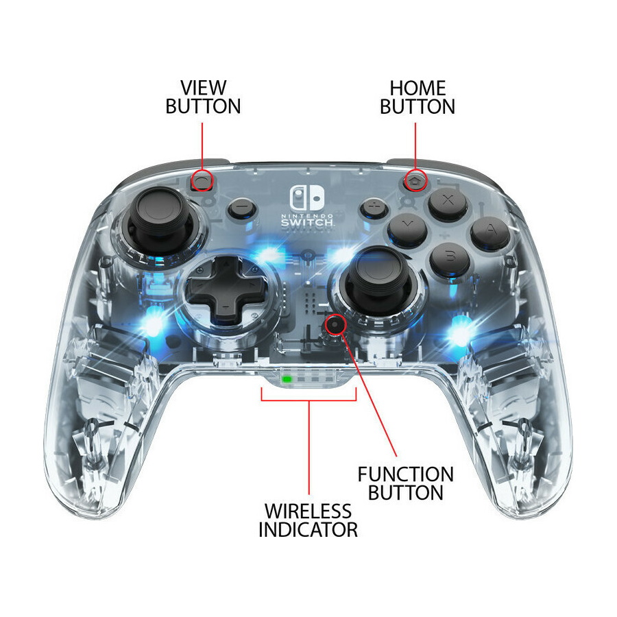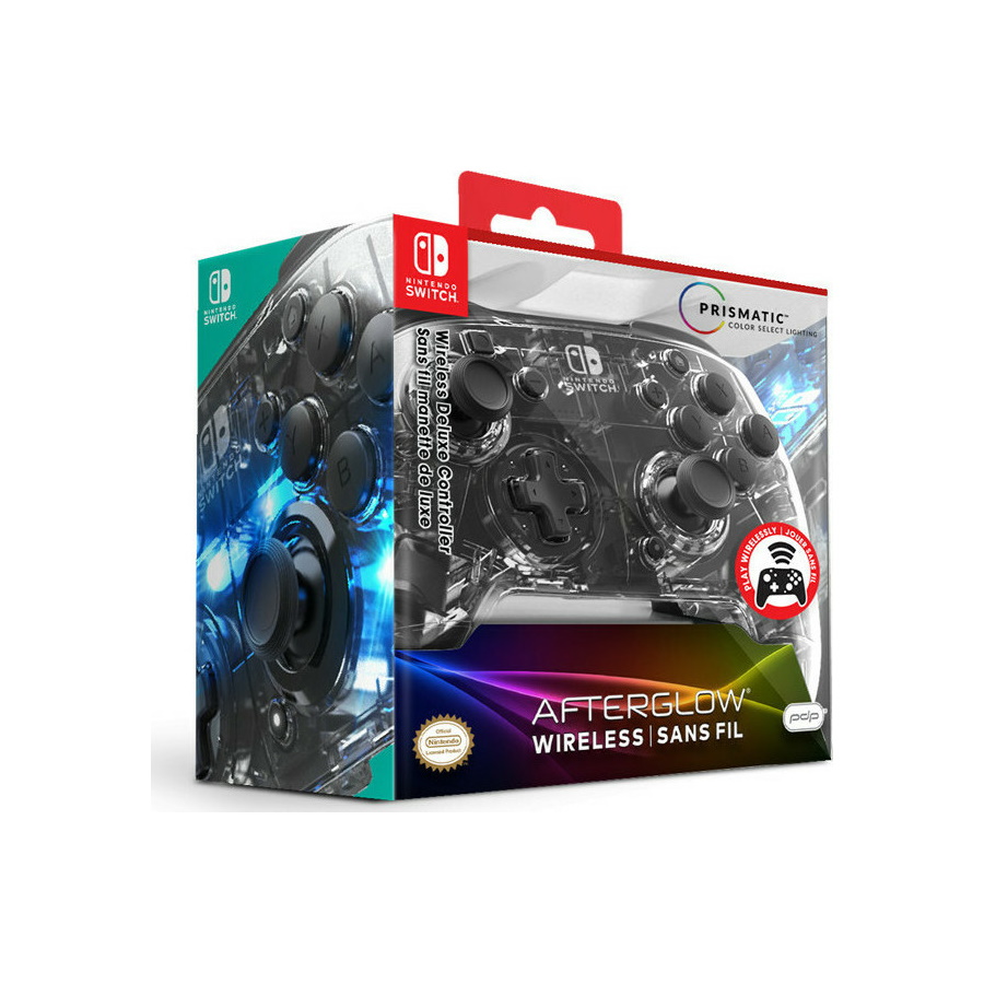 Cut the cord and go wireless with the Afterglow™ Wireless Deluxe Controller for Nintendo Switch! Choose your glow with the Prismatic LED lighting and get extra-long play time with the built-in rechargeable battery. Wireless connectivity and a 40-hour rechargeable battery for longer playtime Colorful LED light design with customizable colors and lighting modes Motion control to maximize your gameplay Dual programmable paddle-style back buttons to fit the way you play Officially licensed by Nintendo
