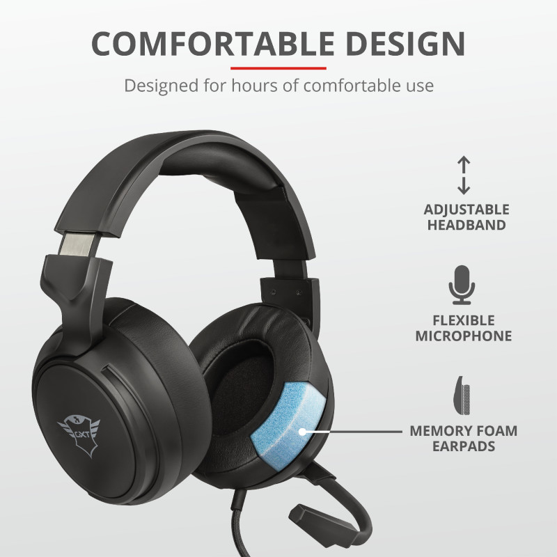 Άνετο σετ ακουστικών τύπου over-ear για παιχνίδια, με εξαιρετικά μεγάλα μαξιλαράκια αυτιών που διαθέτουν αφρώδες υλικό με χαρακτηριστικά μνήμης Βασικά χαρακτηριστικά • Σετ ακουστικών για παιχνίδια, κατάλληλο για πολλές πλατφόρμες• Μεγάλα, μαλακά επιθέματα αυτιών τύπου over-ear, κατασκευασμένα από άνετο αφρώδες υλικό με χαρακτηριστικά μνήμης• Μονάδες μεγαφώνων 50 χιλ. για βαθύ και πλούσιο μπάσο και καθαρά πρίμα• Ρυθμιζόμενη στέκα με ελκυστικές λεπτομέρειες από βουρτσισμένο μέταλλο, καθώς και αναδιπλούμενο μικρόφωνο• Ενσωματωμένο χειριστήριο για έλεγχο της έντασης του ήχου και διακόπτης σίγασης του μικροφώνου• Καλώδιο με υφασμάτινη επικάλυψη και σύνδεση πολλαπλών χρήσεων για κονσόλες, φορητούς υπολογιστές, τηλέφωνα και tablet (1 μ.) Περιεχόμενο συσκευασίας • Σετ ακουστικών• Καλώδιο επέκτασης• Εγχειρίδιο χρήσης• Αυτοκόλλητο Gaming Απαιτήσεις συστήματος • Σύνδεση ακουστικών 3,5 χιλ. και σύνδεση μικροφώνου 3,5 χιλ.• Ή συνδυασμένη υποδοχή σύνδεσης ακουστικών/μικροφώνου 3,5 χιλ.• Ή χειριστήριο κονσόλας με σύνδεση για βύσμα 3,5 χιλ.