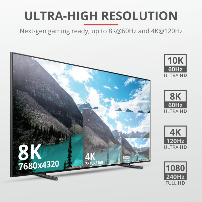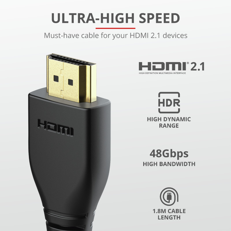 Καλώδιο HDMI εξαιρετικά υψηλής ταχύτητας, μήκους 1,8 μ., για να απολαμβάνετε τα παιχνίδια επόμενης γενιάς με υψηλή ανάλυση έως και 8K Βασικά χαρακτηριστικά • Καλώδιο HDMI εξαιρετικά υψηλής ταχύτητας· τεχνολογία HDMI 2.1• Για γρήγορη, σταθερή και υψηλής ανάλυσης σύνδεση μεταξύ της κονσόλας και της τηλεόρασης• Υποστηρίζει υψηλές αναλύσεις και ρυθμούς καρέ: έως και 8K@60Hz ή 4K@120Hz• Συμβατότητα με τα παιχνίδια επόμενης γενιάς· λειτουργεί με όλες τις συσκευές που υποστηρίζουν HDMI• Υψηλό εύρος ζώνης, 48Gbps• Μήκος 1,8m, με επιχρυσωμένα βύσματα Περιεχόμενο συσκευασίας • Καλώδιο HDMI εξαιρετικά υψηλής ταχύτητας