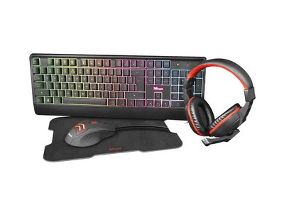 Διαστάσεις: 0.00228982 Περιγραφή προϊόντος: TRUST – Ziva 4-in-1 Gaming Bundle (Keyboard, Mouse, Headset, Mousepad) Κατασκευαστής: TRUST Τεχνολογία σύνδεσης: Ενσύρματη Τύπος διασύνδεσης: Ενσύρματη – USB Προτεινόμενη χρήση: Gaming Σειρά προϊόντων: Gaming Bundles Τύπος: Gaming bundle Χαρακτηριστικά πληκτρολογίου: Multicolour LED-illuminated gaming keyboard with full-size layout, Sturdy, spill-resistant design, Special gaming mode to disable the Windows key Χρώμα: Black Μοντέλο: Ziva 4-in-1 Gaming Bundle Επιπλέον Χαρακτηριστικά: Illuminated gaming mouse with adjustable speed (1000 – 1600 –2200 – 3000 DPI), Rubber coating for a firm grip, Comfortable Gamign headsets with soft over-ear cushions, Gaming mousepad with a large surface of 220 x 300cm, Surface texture works with all sensitivities and sensors